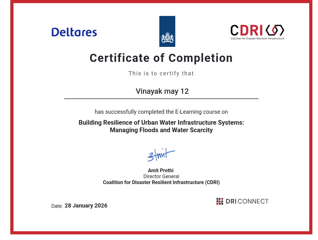 This course aims to build capacity to address the growing challenges of climate- and disaster-induced risks to urban water infrastructure. It has been developed by CDRI in collaboration with Deltares, and with the support of the Ministry of Infrastructure and Water Management, Government of the Netherlands.