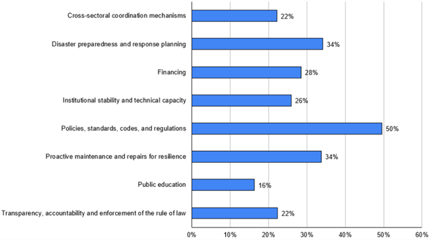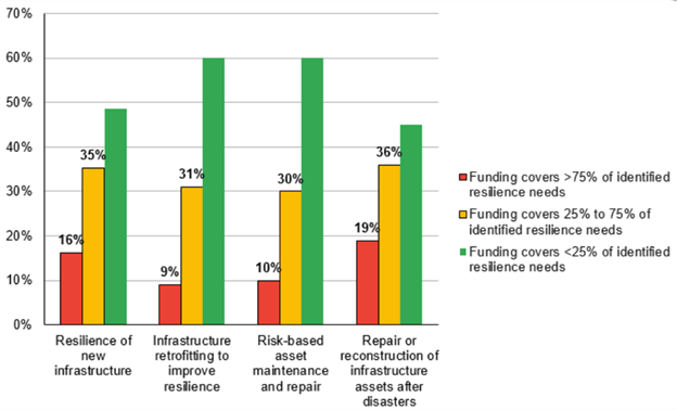 Only 15% of respondents believe that the public sector has adequate capacity for resilient infrastructure. Only 29% say that private sector capacity is adequate. |