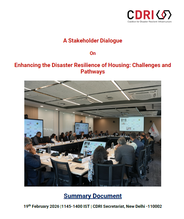 A Stakeholder Dialogue on Enhancing the Disaster Resilience of Housing: Challenges and Pathways was convened by the Coalition for Disaster Resilient Infrastructure (CDRI) at its Secretariat in New Delhi on 19 February 2026, with Kamal Kishore, Special Representative of the United Nations Secretary-General for Disaster Risk Reduction and Head of the United Nations Office for Disaster Risk Reduction (UNDRR). The dialogue examined the essential building blocks of resilient housing, including codes and standards supported by knowledge systems and technical capacities, which can be enabled by governance arrangements, regulatory and policy frameworks, financing mechanisms, and inclusive, people-centric approaches that recognize housing as a lived space shaped by its occupants. The exchange underscored the need for sustained engagement through continued dialogues, thematic exchanges, and communities of practice, with follow-up collaboration to deepen collective efforts. The expertise represented in the room, was acknowledged as a resource that could be mobilized to support countries facing large-scale reconstruction challenges. Finally, the dialogue reflected a shared commitment to translating insights into tangible action and measurable progress in strengthening the disaster resilience of housing. |