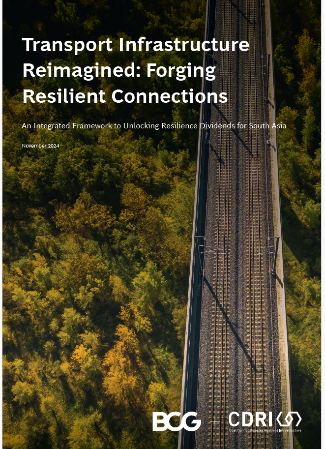 This report, titled "Transport Infrastructure Reimagined: Forging Resilient Connections – An Integrated Framework to Unlocking Resilience Dividends for South Asia," is a collaborative publication by Boston Consulting Group (BCG) and the Coalition for Disaster Resilient Infrastructure (CDRI), released in November 2024. It addresses the escalating risks posed by geo-climatic hazards to South Asia's transport sector, where assets valued at approximately US$575 billion are exposed, potentially leading to over US$1 billion in annual damages. The document emphasizes embedding resilience into transport infrastructure—roads, railways, ports, and airports—through a comprehensive framework that integrates the project lifecycle from planning to end-of-life. It highlights strategic enablers such as robust policies, data-driven technologies, and innovative financing, alongside accelerators like governance and capacity building. Tailored interventions, combining green (e.g., mangrove barriers) and grey (e.g., elevated structures) solutions, are proposed to mitigate hazards like floods and landslides. Key calls to action urge stakeholders—including governments, financial institutions, and academia—to develop adaptation plans, mainstream climate risk assessments, update standards, and enhance financing access. By prioritizing resilience, the report underscores potential dividends: economic stability, environmental sustainability, and social equity, averting losses while supporting sustainable development in vulnerable regions. |